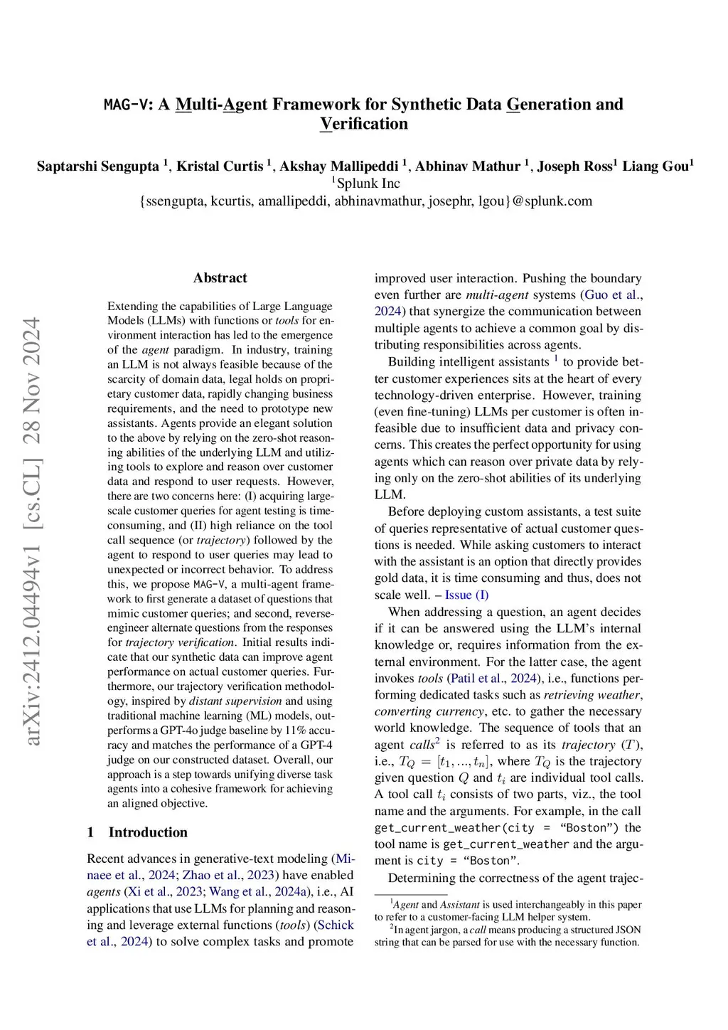 MAG-V: A Multi-Agent Framework for Synthetic Data Generation and Verification