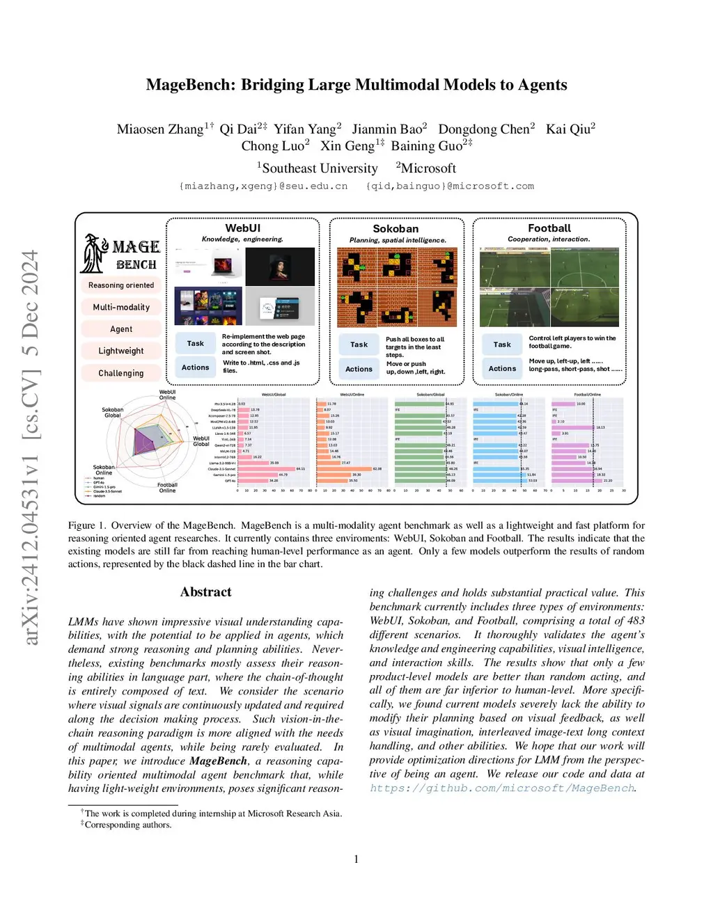 LMMs have shown impressive visual understanding capabilities, with the potential to be applied in agents, which demand strong reasoning and planning abilities. Nevertheless, existing benchmarks mostly assess their reasoning abilities in language part, where the chain-of-thought is entirely composed of text.We consider the scenario where visual signals are continuously updated and required along the decision making process. Such vision-in-the-chain reasoning paradigm is more aligned with the needs of multimodal agents, while being rarely evaluated. In this paper, we introduce MageBench, a reasoning capability oriented multimodal agent benchmark that, while having light-weight environments, poses significant reasoning challenges and holds substantial practical value. This benchmark currently includes three types of environments: WebUI, Sokoban, and Football, comprising a total of 483 different scenarios. It thoroughly validates the agent's knowledge and engineering capabilities, visual intelligence, and interaction skills. The results show that only a few product-level models are better than random acting, and all of them are far inferior to human-level. More specifically, we found current models severely lack the ability to modify their planning based on visual feedback, as well as visual imagination, interleaved image-text long context handling, and other abilities. We hope that our work will provide optimization directions for LMM from the perspective of being an agent. We release our code and data at https://github.com/microsoft/MageBench.