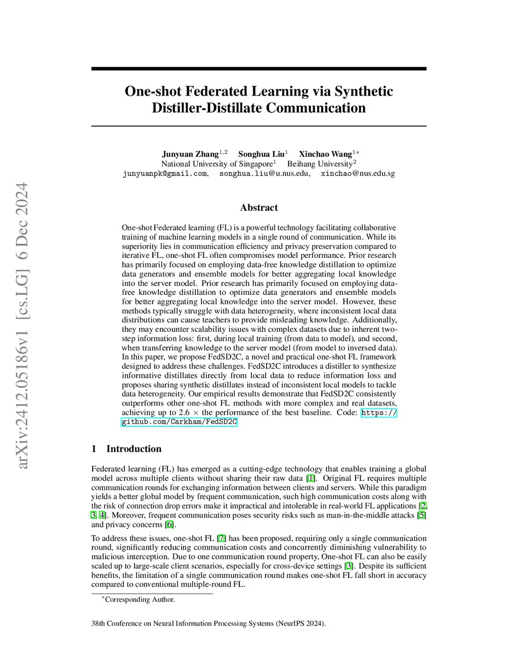 One-shot Federated Learning via Synthetic Distiller-Distillate