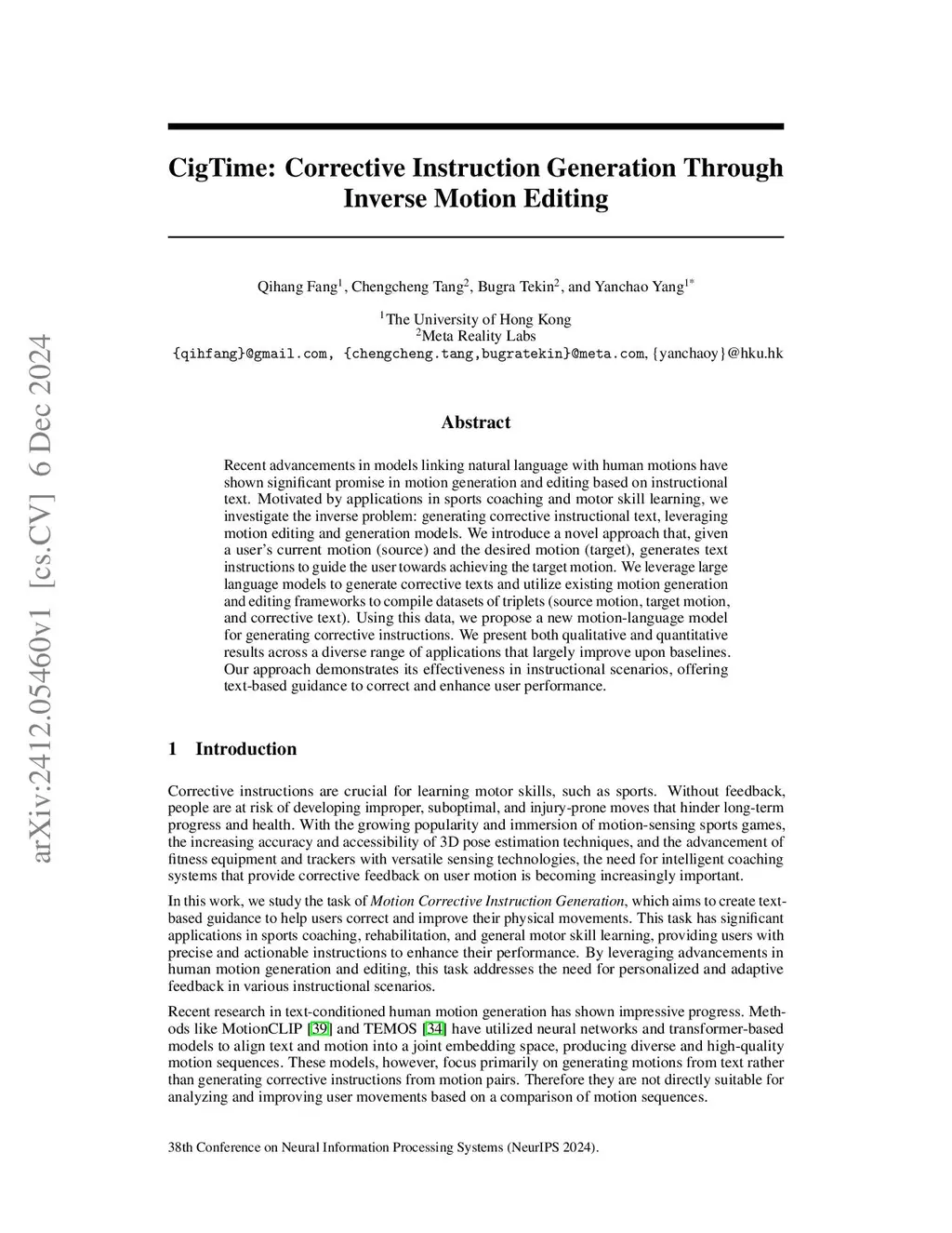 CigTime: Corrective Instruction Generation Through Inverse Motion