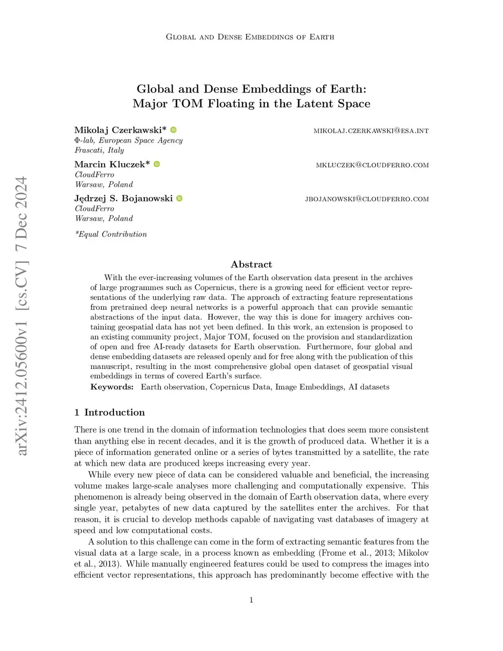 Global and Dense Embeddings of Earth: Major TOM Floating in the Latent