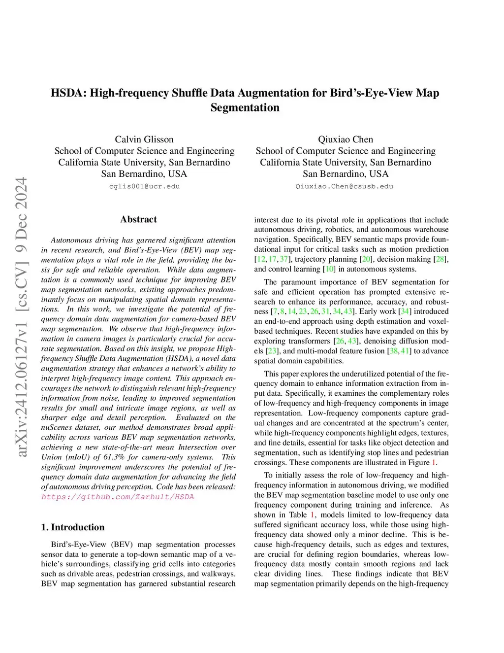 HSDA: High-frequency Shuffle Data Augmentation for Bird's-Eye-View Map