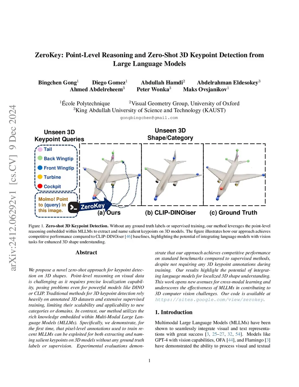 ZeroKey: Point-Level Reasoning and Zero-Shot 3D Keypoint Detection from