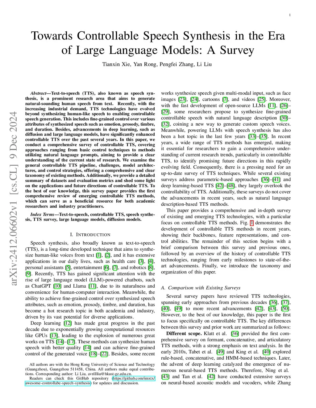 Text-to-speech (TTS) has advanced from generating natural-sounding speech to enabling fine-grained control over attributes like emotion, timbre, and style. Driven by rising industrial demand and breakthroughs in deep learning, e.g., diffusion and large language models (LLMs), controllable TTS has become a rapidly growing research area. This survey provides the first comprehensive review of controllable TTS methods, from traditional control techniques to emerging approaches using natural language prompts. We categorize model architectures, control strategies, and feature representations, while also summarizing challenges, datasets, and evaluations in controllable TTS. This survey aims to guide researchers and practitioners by offering a clear taxonomy and highlighting future directions in this fast-evolving field. One can visitthis https URLfor a comprehensive paper list and updates.
