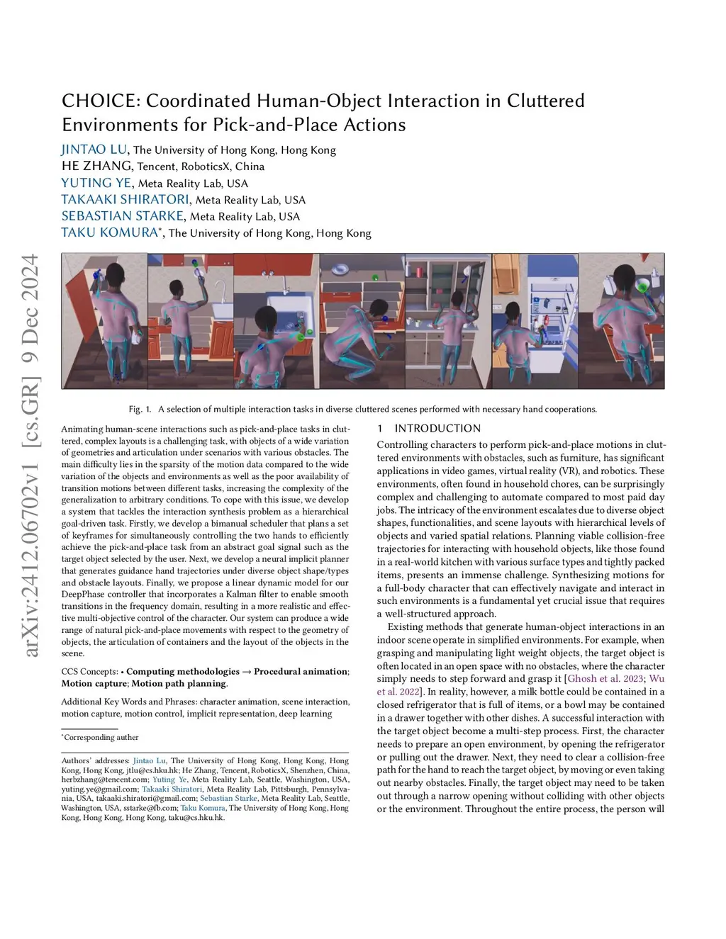 CHOICE: Coordinated Human-Object Interaction in Cluttered Environments for Pick-and-Place Actions
