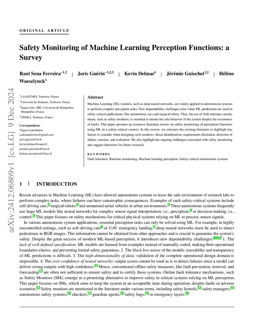 Safety Monitoring of Machine Learning Perception Functions: a Survey