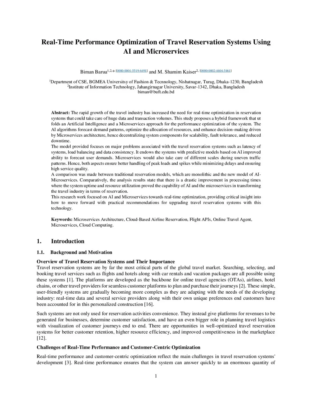 The rapid growth of the travel industry has increased the need for real-time optimization in reservation systems that could take care of huge data and transaction volumes. This study proposes a hybrid framework that ut folds an Artificial Intelligence and a Microservices approach for the performance optimization of the system. The AI algorithms forecast demand patterns, optimize the allocation of resources, and enhance decision-making driven by Microservices architecture, hence decentralizing system components for scalability, fault tolerance, and reduced downtime. The model provided focuses on major problems associated with the travel reservation systems such as latency of systems, load balancing and data consistency. It endows the systems with predictive models based on AI improved ability to forecast user demands. Microservices would also take care of different scales during uneven traffic patterns. Hence, both aspects ensure better handling of peak loads and spikes while minimizing delays and ensuring high service quality. A comparison was made between traditional reservation models, which are monolithic and the new model of AI-Microservices. Comparatively, the analysis results state that there is a drastic improvement in processing times where the system uptime and resource utilization proved the capability of AI and the microservices in transforming the travel industry in terms of reservation. This research work focused on AI and Microservices towards real-time optimization, providing critical insight into how to move forward with practical recommendations for upgrading travel reservation systems with this technology.