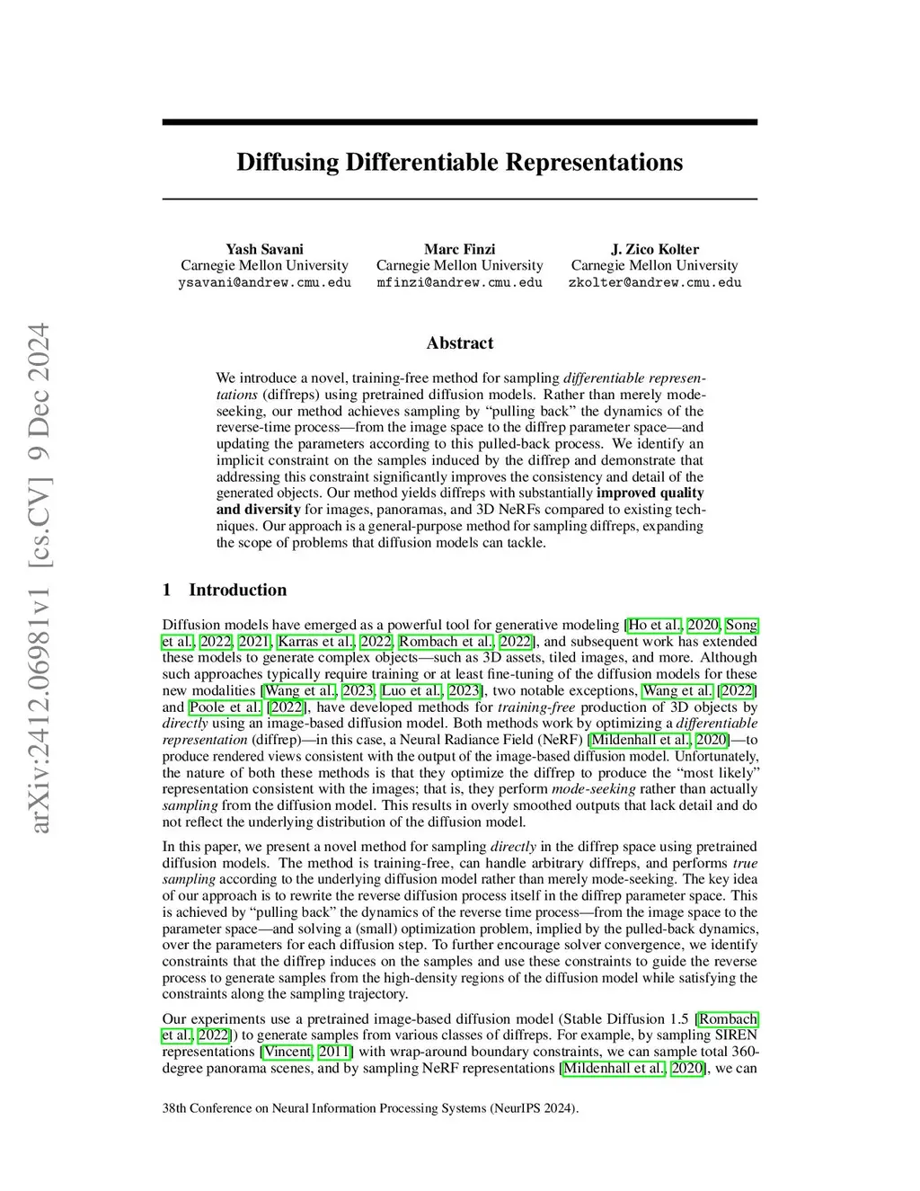 Diffusing Differentiable Representations