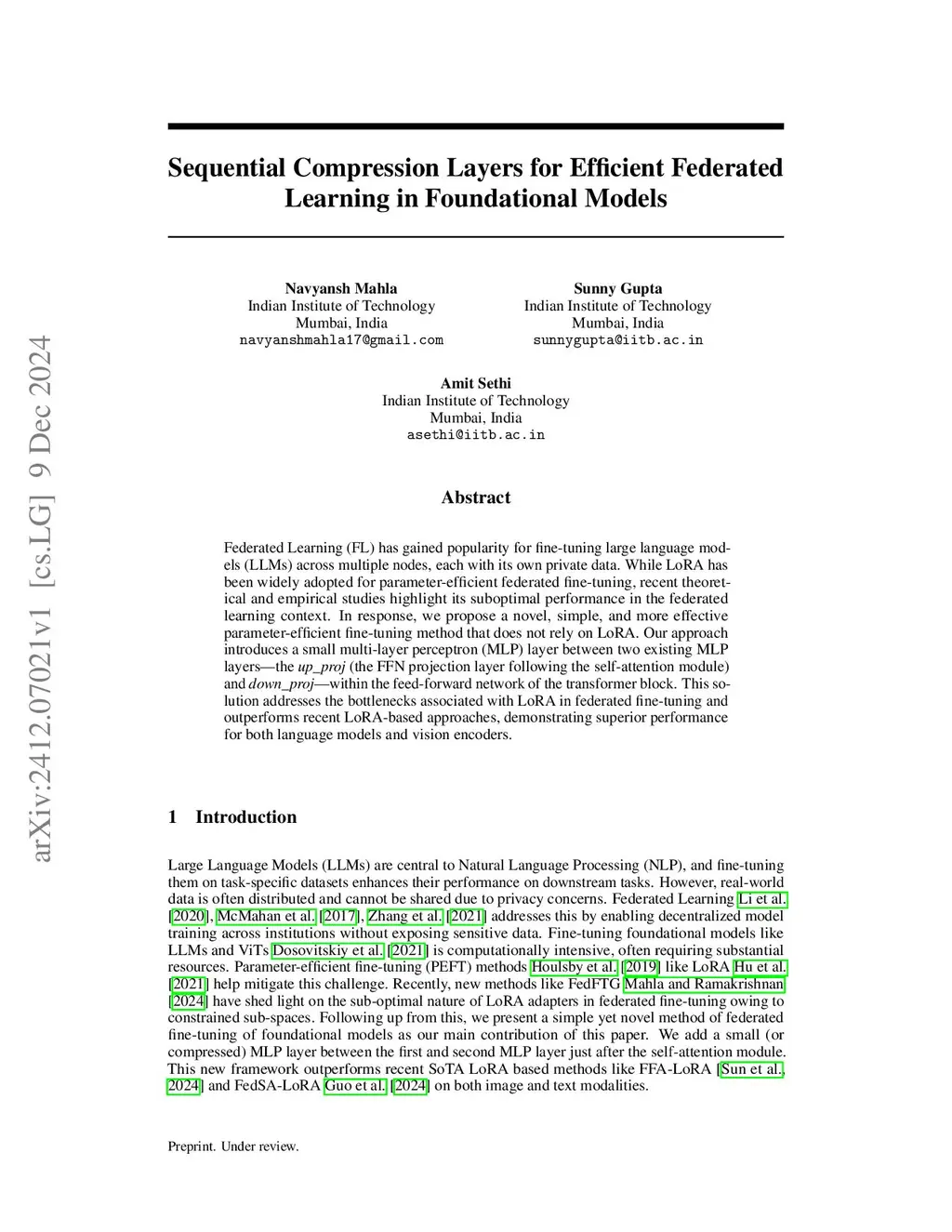Sequential Compression Layers for Efficient Federated Learning in Foundational Models