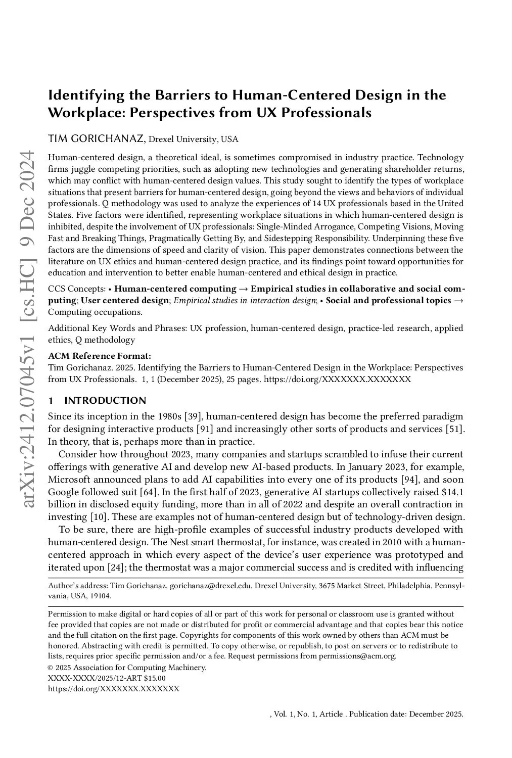 Identifying the Barriers to Human-Centered Design in the Workplace: