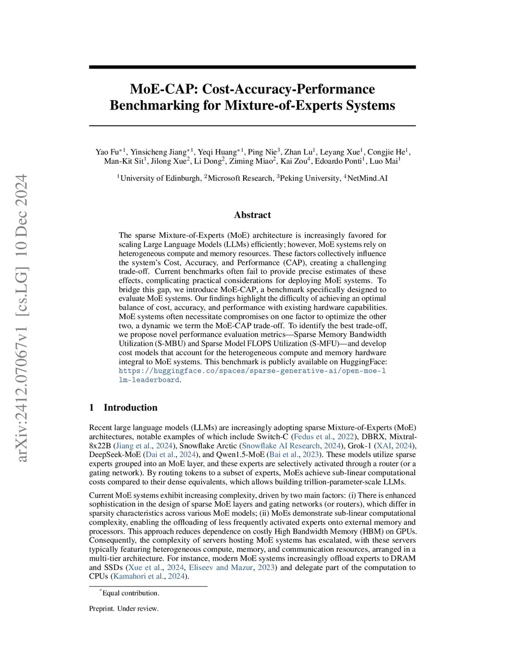 MoE-CAP: Benchmarking Cost, Accuracy and Performance of Sparse Mixture-of-Experts Systems