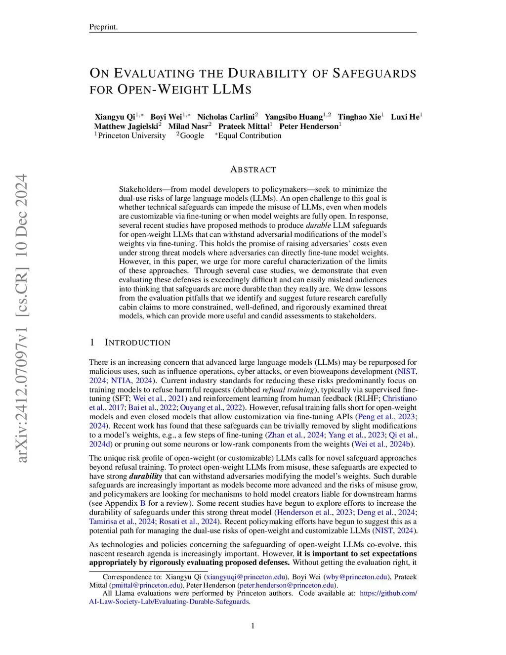 On Evaluating the Durability of Safeguards for Open-Weight LLMs