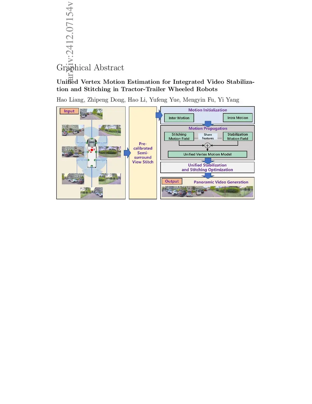 Unified Vertex Motion Estimation for Integrated Video Stabilization and Stitching in Tractor-Trailer Wheeled Robots
