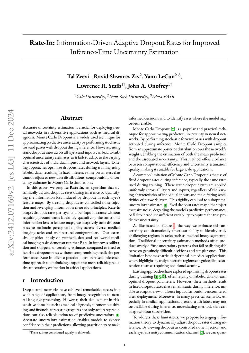 Rate-In: Information-Driven Adaptive Dropout Rates for Improved Inference-Time Uncertainty Estimation