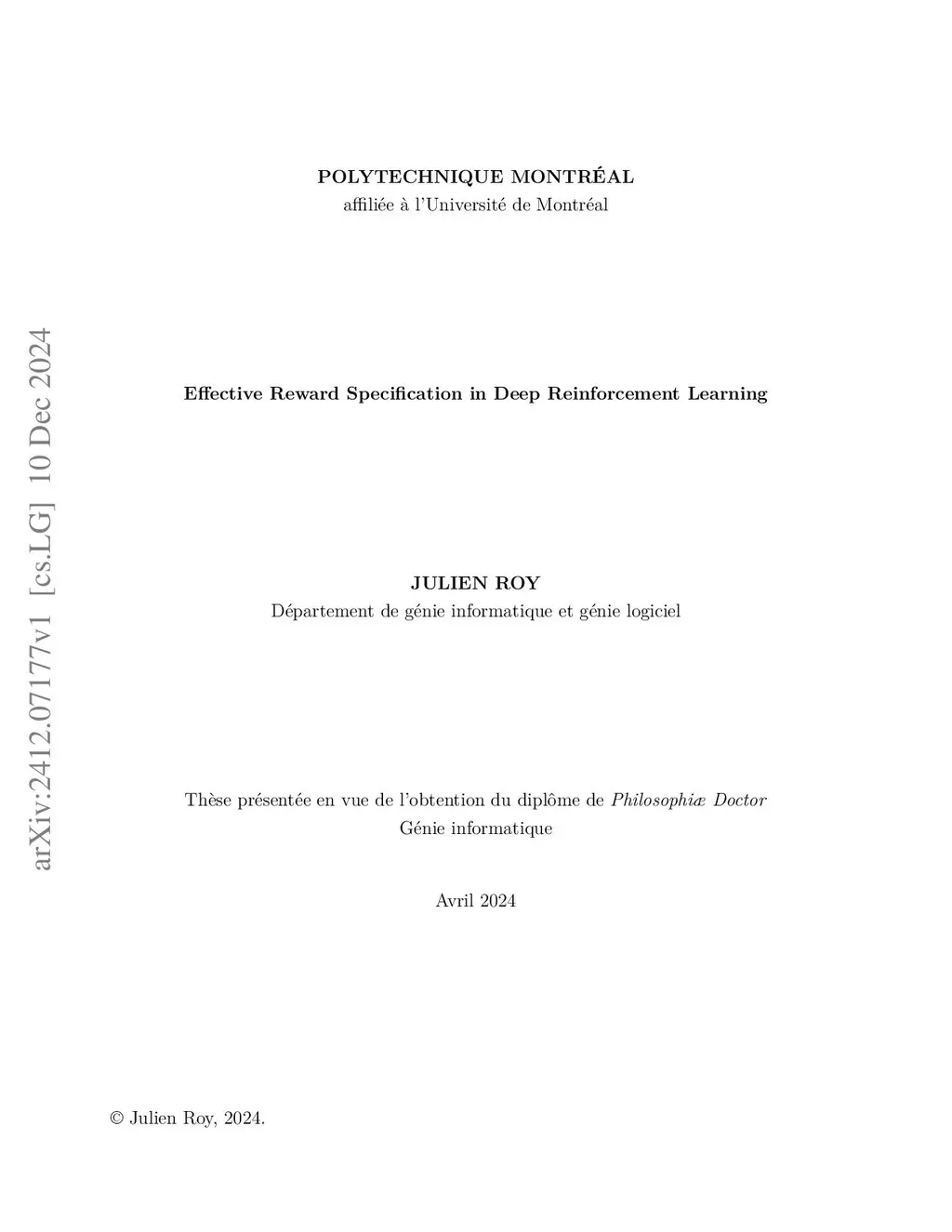 Effective Reward Specification in Deep Reinforcement Learning