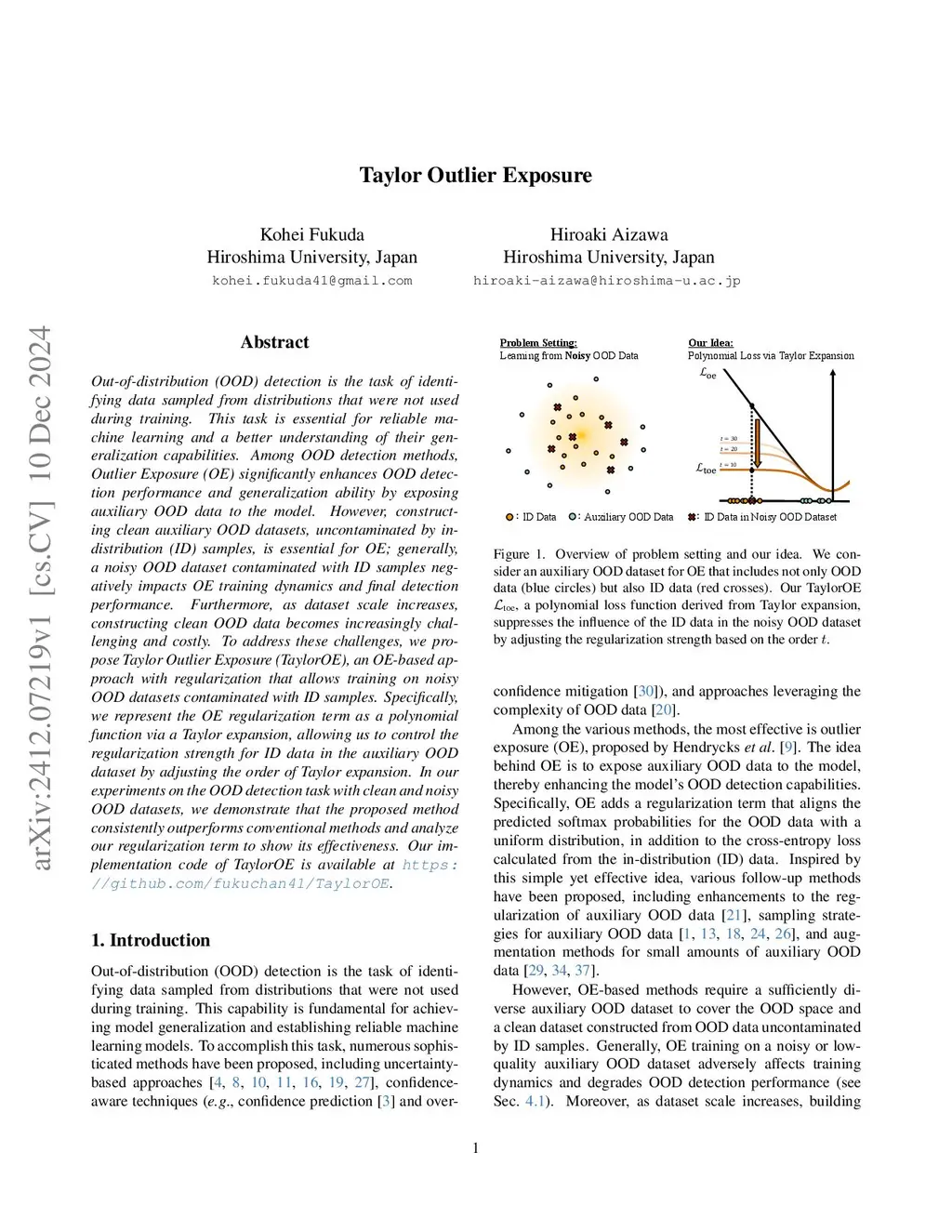 Out-of-distribution (OOD) detection is the task of identifying data sampled from distributions that were not used during training. This task is essential for reliable machine learning and a better understanding of their generalization capabilities. Among OOD detection methods, Outlier Exposure (OE) significantly enhances OOD detection performance and generalization ability by exposing auxiliary OOD data to the model. However, constructing clean auxiliary OOD datasets, uncontaminated by in-distribution (ID) samples, is essential for OE; generally, a noisy OOD dataset contaminated with ID samples negatively impacts OE training dynamics and final detection performance. Furthermore, as dataset scale increases, constructing clean OOD data becomes increasingly challenging and costly. To address these challenges, we propose Taylor Outlier Exposure (TaylorOE), an OE-based approach with regularization that allows training on noisy OOD datasets contaminated with ID samples. Specifically, we represent the OE regularization term as a polynomial function via a Taylor expansion, allowing us to control the regularization strength for ID data in the auxiliary OOD dataset by adjusting the order of Taylor expansion. In our experiments on the OOD detection task with clean and noisy OOD datasets, we demonstrate that the proposed method consistently outperforms conventional methods and analyze our regularization term to show its effectiveness. Our implementation code of TaylorOE is available at \url{https://github.com/fukuchan41/TaylorOE}.