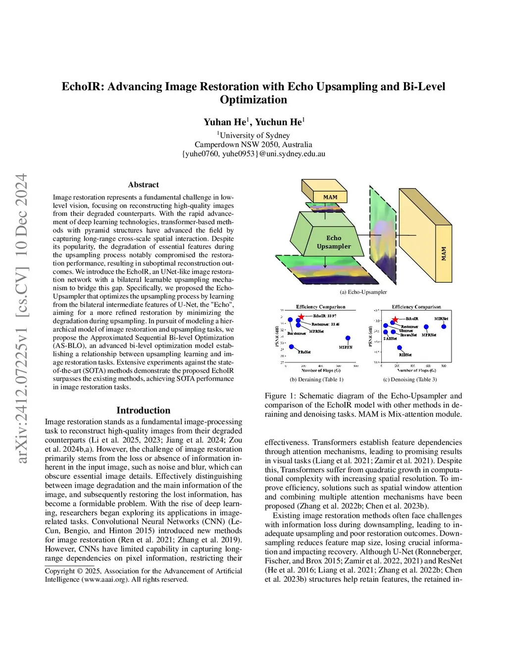 EchoIR: Advancing Image Restoration with Echo Upsampling and Bi-Level