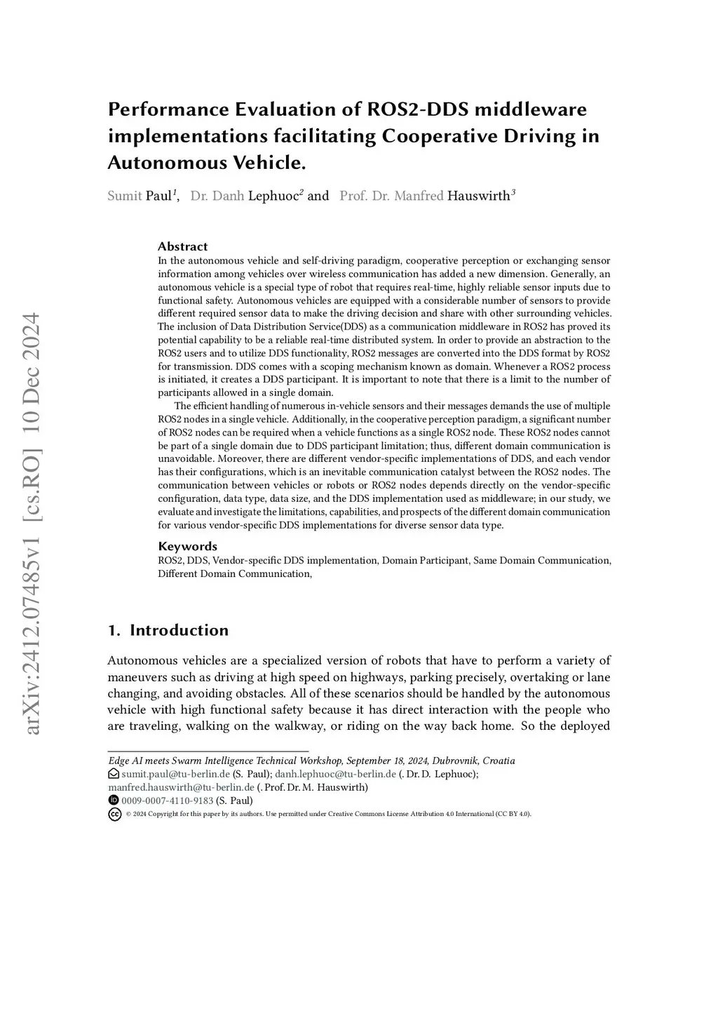 In the autonomous vehicle and self-driving paradigm, cooperative perception or exchanging sensor information among vehicles over wireless communication has added a new dimension. Generally, an autonomous vehicle is a special type of robot that requires real-time, highly reliable sensor inputs due to functional safety. Autonomous vehicles are equipped with a considerable number of sensors to provide different required sensor data to make the driving decision and share with other surrounding vehicles. The inclusion of Data Distribution Service(DDS) as a communication middleware in ROS2 has proved its potential capability to be a reliable real-time distributed system. DDS comes with a scoping mechanism known as domain. Whenever a ROS2 process is initiated, it creates a DDS participant. It is important to note that there is a limit to the number of participants allowed in a single domain. The efficient handling of numerous in-vehicle sensors and their messages demands the use of multiple ROS2 nodes in a single vehicle. Additionally, in the cooperative perception paradigm, a significant number of ROS2 nodes can be required when a vehicle functions as a single ROS2 node. These ROS2 nodes cannot be part of a single domain due to DDS participant limitation; thus, different domain communication is unavoidable. Moreover, there are different vendor-specific implementations of DDS, and each vendor has their configurations, which is an inevitable communication catalyst between the ROS2 nodes. The communication between vehicles or robots or ROS2 nodes depends directly on the vendor-specific configuration, data type, data size, and the DDS implementation used as middleware; in our study, we evaluate and investigate the limitations, capabilities, and prospects of the different domain communication for various vendor-specific DDS implementations for diverse sensor data type.