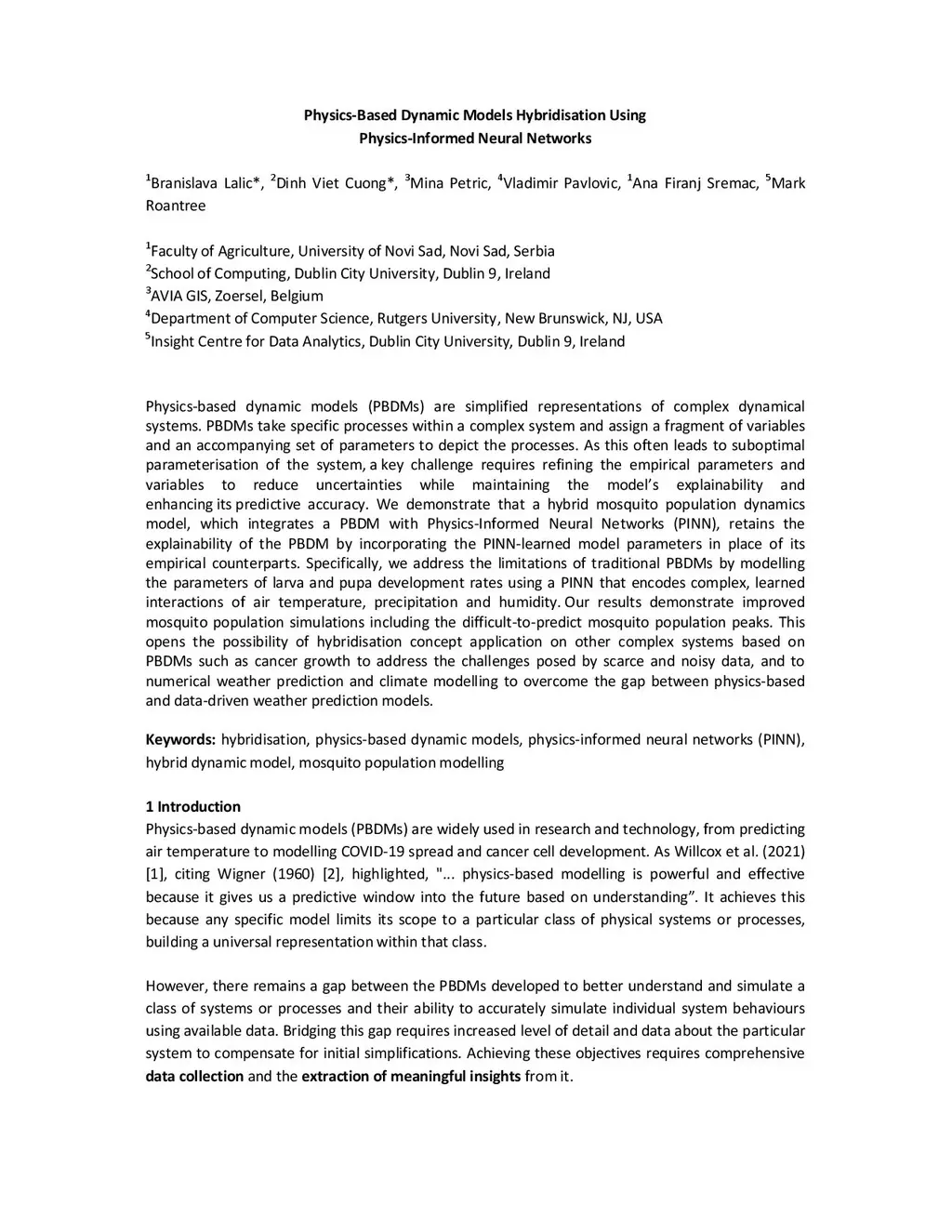 Vector-borne diseases continue to pose a significant health threat globally with more than 3 billion people at risk each year. Despite some limitations, mechanistic dynamic models are a popular approach to representing biological processes using ordinary differential equations where the parameters describe the different development and survival rates. Recent advances in population modelling have seen the combination of these mechanistic models with machine learning. One approach is physics-informed neural networks (PINNs) whereby the machine learning framework embeds physical, biological, or chemical laws into neural networks trained on observed or measured data. This enables forward simulations, predicting system behaviour from given parameters and inputs, and inverse modelling, improving parameterisation of existing parameters and estimating unknown or latent variables. In this paper, we focus on improving the parameterisation of biological processes in mechanistic models using PINNs to determine inverse parameters. In comparing mechanistic and PINN models, our experiments offer important insights into the strengths and weaknesses of both approaches but demonstrated that the PINN approach generally outperforms the dynamic model. For a deeper understanding of the performance of PINN models, a final validation was used to investigate how modifications to PINN architectures affect the performance of the framework. By varying only a single component at a time and keeping all other factors constant, we are able to observe the effect of each change.