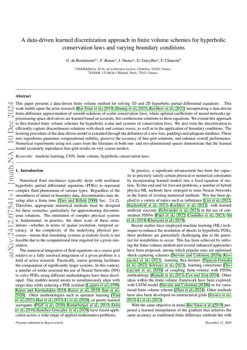 This paper presents a data-driven finite volume method for solving 1D and 2D hyperbolic partial differential equations. This work builds upon the prior research incorporating a data-driven finite-difference approximation of smooth solutions of scalar conservation laws, where optimal coefficients of neural networks approximating space derivatives are learned based on accurate, but cumbersome solutions to these equations. We extend this approach to flux-limited finite volume schemes for hyperbolic scalar and systems of conservation laws. We also train the discretization to efficiently capture discontinuous solutions with shock and contact waves, as well as to the application of boundary conditions. The learning procedure of the data-driven model is extended through the definition of a new loss, paddings and adequate database. These new ingredients guarantee computational stability, preserve the accuracy of fine-grid solutions, and enhance overall performance. Numerical experiments using test cases from the literature in both one- and two-dimensional spaces demonstrate that the learned model accurately reproduces fine-grid results on very coarse meshes.