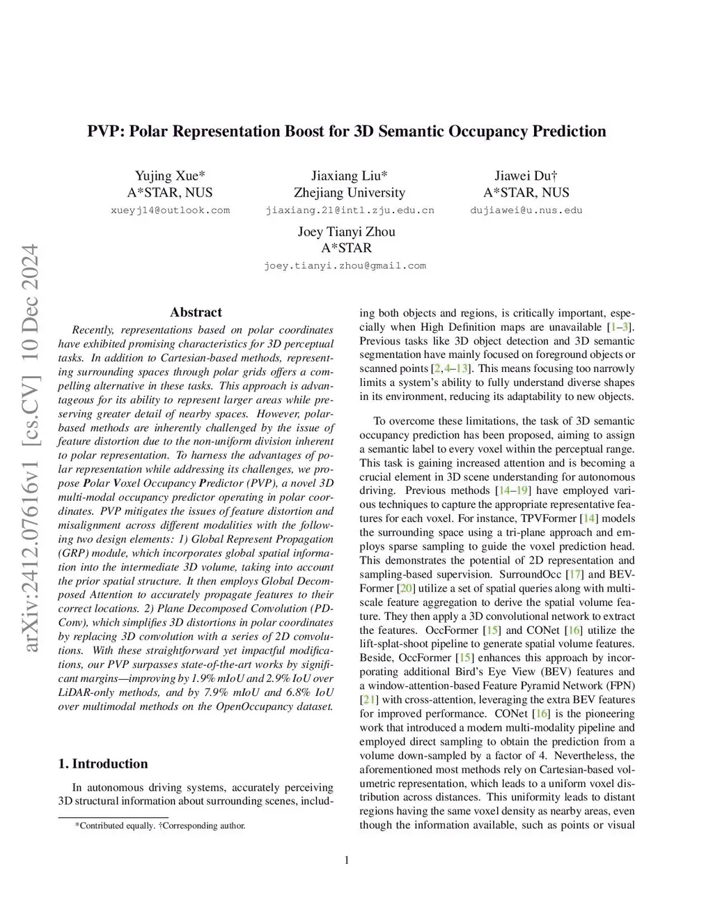PVP: Polar Representation Boost for 3D Semantic Occupancy Prediction