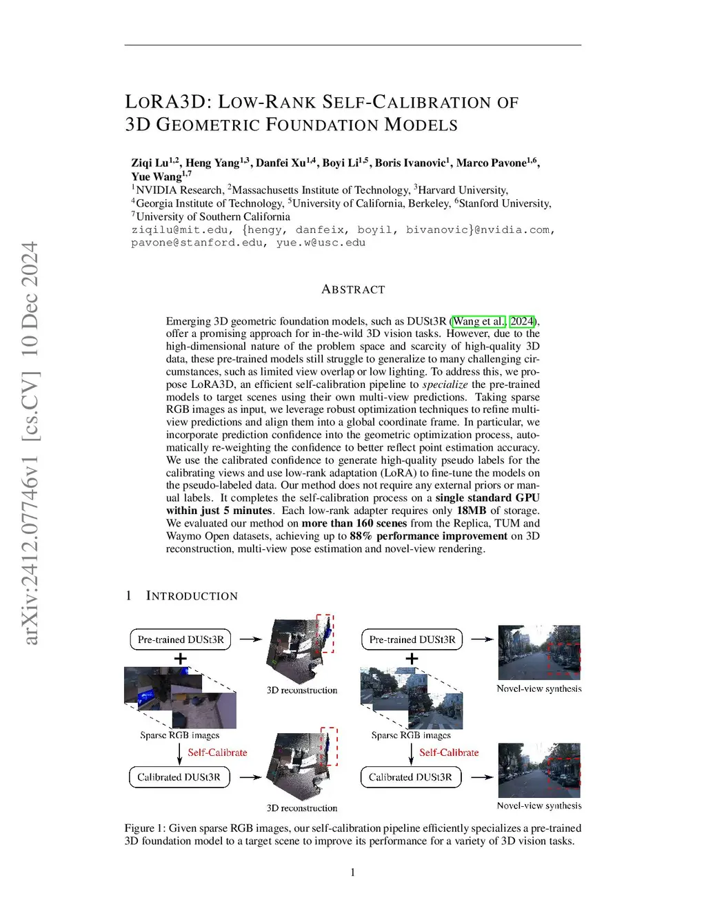 LoRA3D: Low-Rank Self-Calibration of 3D Geometric Foundation Models