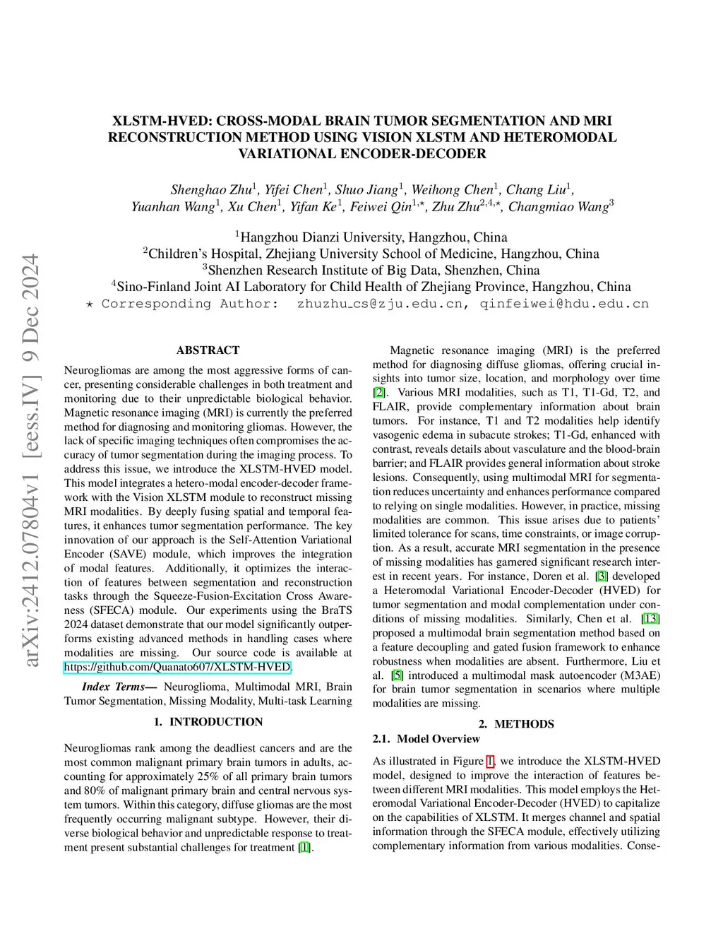 XLSTM-HVED: Cross-Modal Brain Tumor Segmentation and MRI Reconstruction Method Using Vision XLSTM and Heteromodal Variational Encoder-Decoder