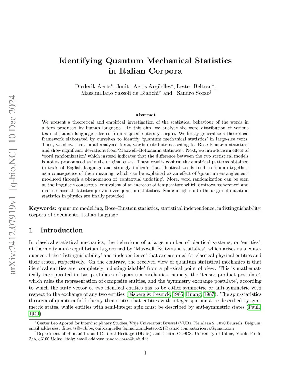 Identifying Quantum Mechanical Statistics in Italian Corpora