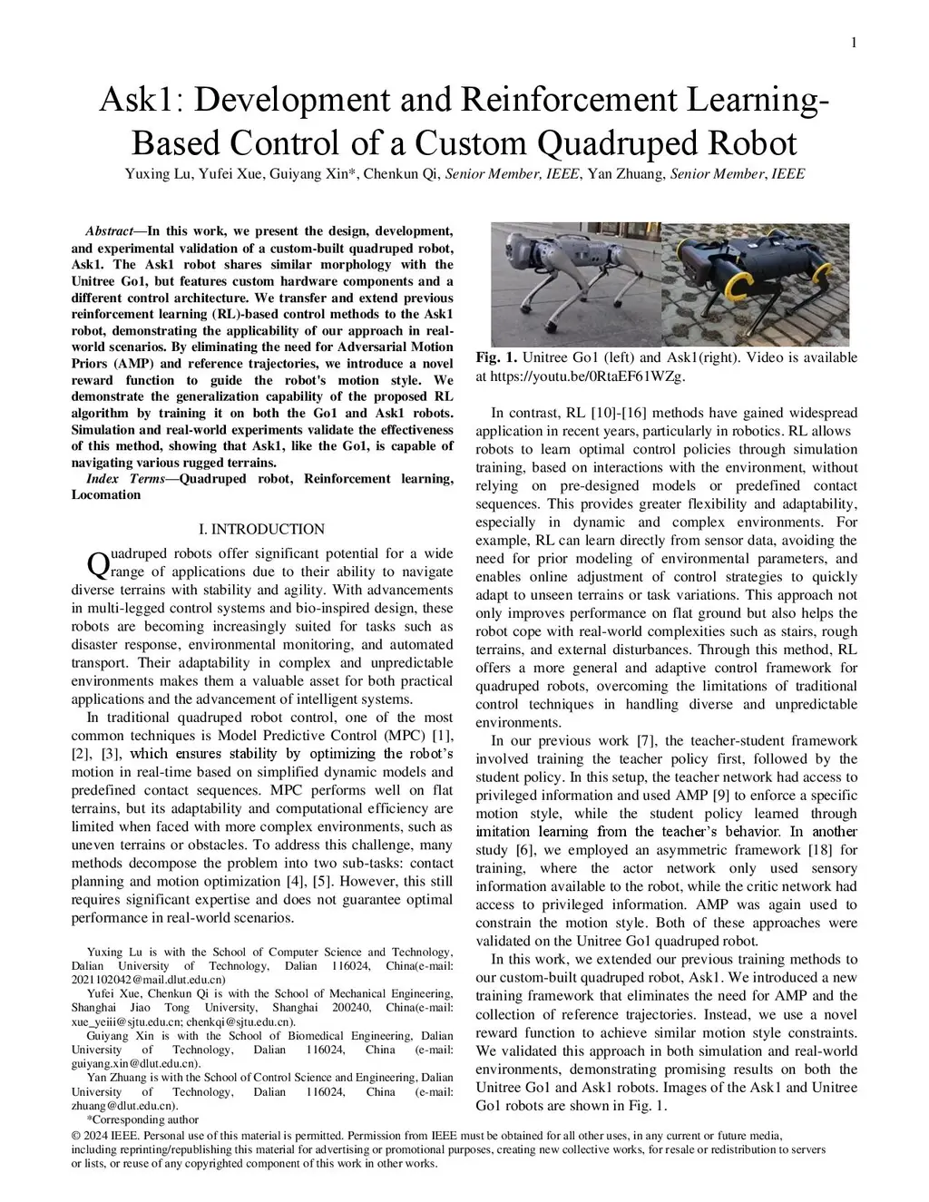 Ask1: Development and Reinforcement Learning-Based Control of a Custom Quadruped Robot