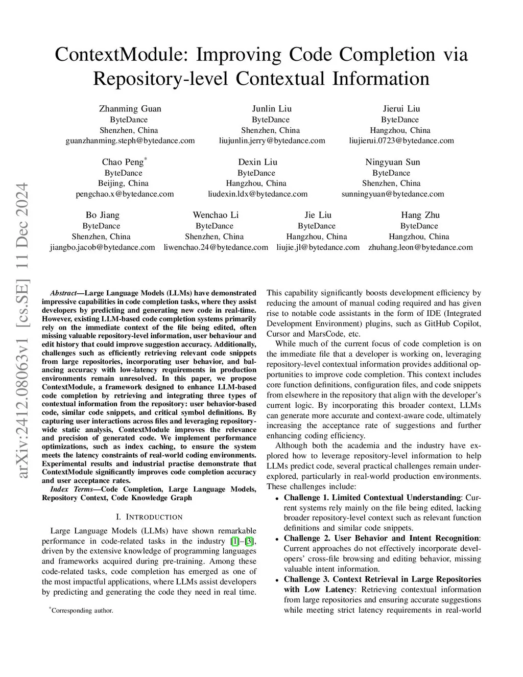 ContextModule: Improving Code Completion via Repository-level Contextual