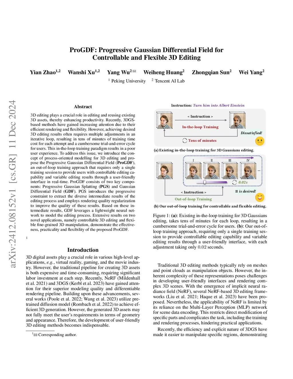 3D editing plays a crucial role in editing and reusing existing 3D assets, thereby enhancing productivity. Recently, 3DGS-based methods have gained increasing attention due to their efficient rendering and flexibility. However, achieving desired 3D editing results often requires multiple adjustments in an iterative loop, resulting in tens of minutes of training time cost for each attempt and a cumbersome trial-and-error cycle for users. This in-the-loop training paradigm results in a poor user experience. To address this issue, we introduce the concept of process-oriented modelling for 3D editing and propose the Progressive Gaussian Differential Field (ProGDF), an out-of-loop training approach that requires only a single training session to provide users with controllable editing capability and variable editing results through a user-friendly interface in real-time. ProGDF consists of two key components: Progressive Gaussian Splatting (PGS) and Gaussian Differential Field (GDF). PGS introduces the progressive constraint to extract the diverse intermediate results of the editing process and employs rendering quality regularization to improve the quality of these results. Based on these intermediate results, GDF leverages a lightweight neural network to model the editing process. Extensive results on two novel applications, namely controllable 3D editing and flexible fine-grained 3D manipulation, demonstrate the effectiveness, practicality and flexibility of the proposed ProGDF.