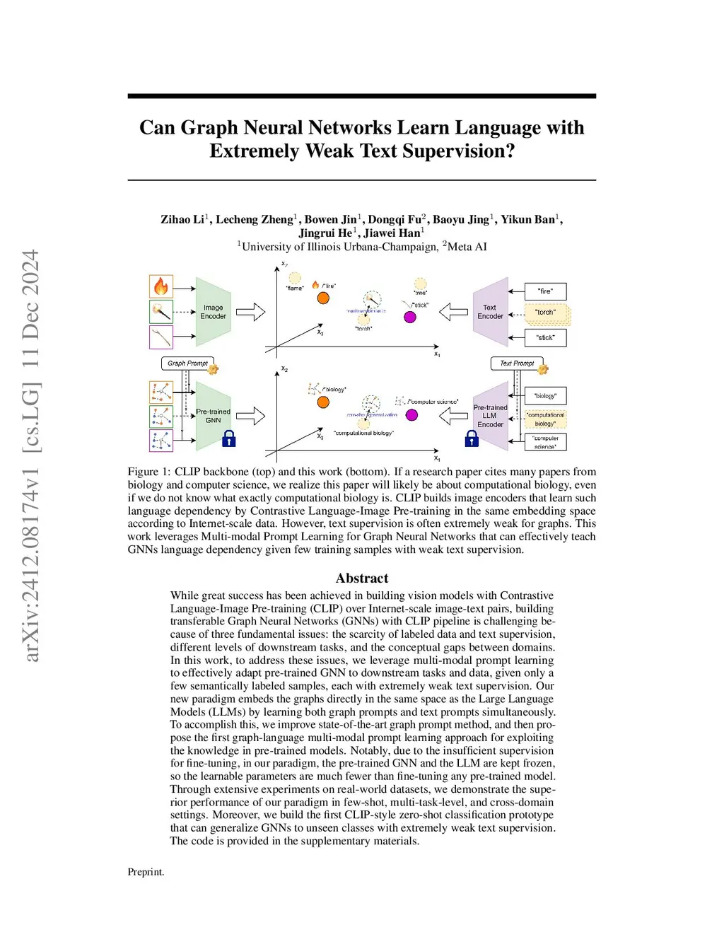 Can Graph Neural Networks Learn Language with Extremely Weak Text Supervision?