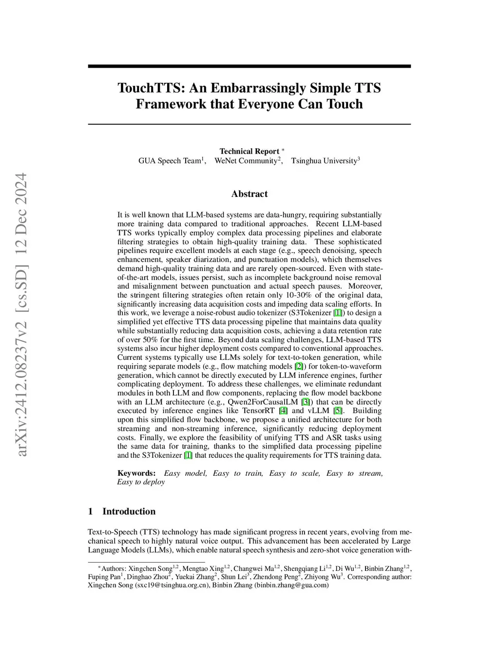 It is well known that LLM-based systems are data-hungry. Recent LLM-based TTS works typically employ complex data processing pipelines to obtain high-quality training data. These sophisticated pipelines require excellent models at each stage (e.g., speech denoising, speech enhancement, speaker diarization, and punctuation models), which themselves demand high-quality training data and are rarely open-sourced. Even with state-of-the-art models, issues persist, such as incomplete background noise removal and misalignment between punctuation and actual speech pauses. Moreover, the stringent filtering strategies often retain only 10-30\% of the original data, significantly impeding data scaling efforts. In this work, we leverage a noise-robust audio tokenizer (S3Tokenizer) to design a simplified yet effective TTS data processing pipeline that maintains data quality while substantially reducing data acquisition costs, achieving a data retention rate of over 50\%. Beyond data scaling challenges, LLM-based TTS systems also incur higher deployment costs compared to conventional approaches. Current systems typically use LLMs solely for text-to-token generation, while requiring separate models (e.g., flow matching models) for token-to-waveform generation, which cannot be directly executed by LLM inference engines, further complicating deployment. To address these challenges, we eliminate redundant modules in both LLM and flow components, replacing the flow model backbone with an LLM architecture. Building upon this simplified flow backbone, we propose a unified architecture for both streaming and non-streaming inference, significantly reducing deployment costs. Finally, we explore the feasibility of unifying TTS and ASR tasks using the same data for training, thanks to the simplified pipeline and the S3Tokenizer that reduces the quality requirements for TTS training data.