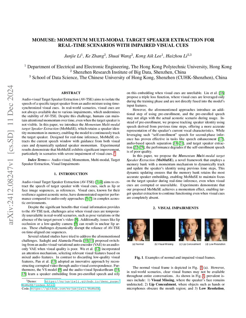 MoMuSE: Momentum Multi-modal Target Speaker Extraction for Real-time Scenarios with Impaired Visual Cues