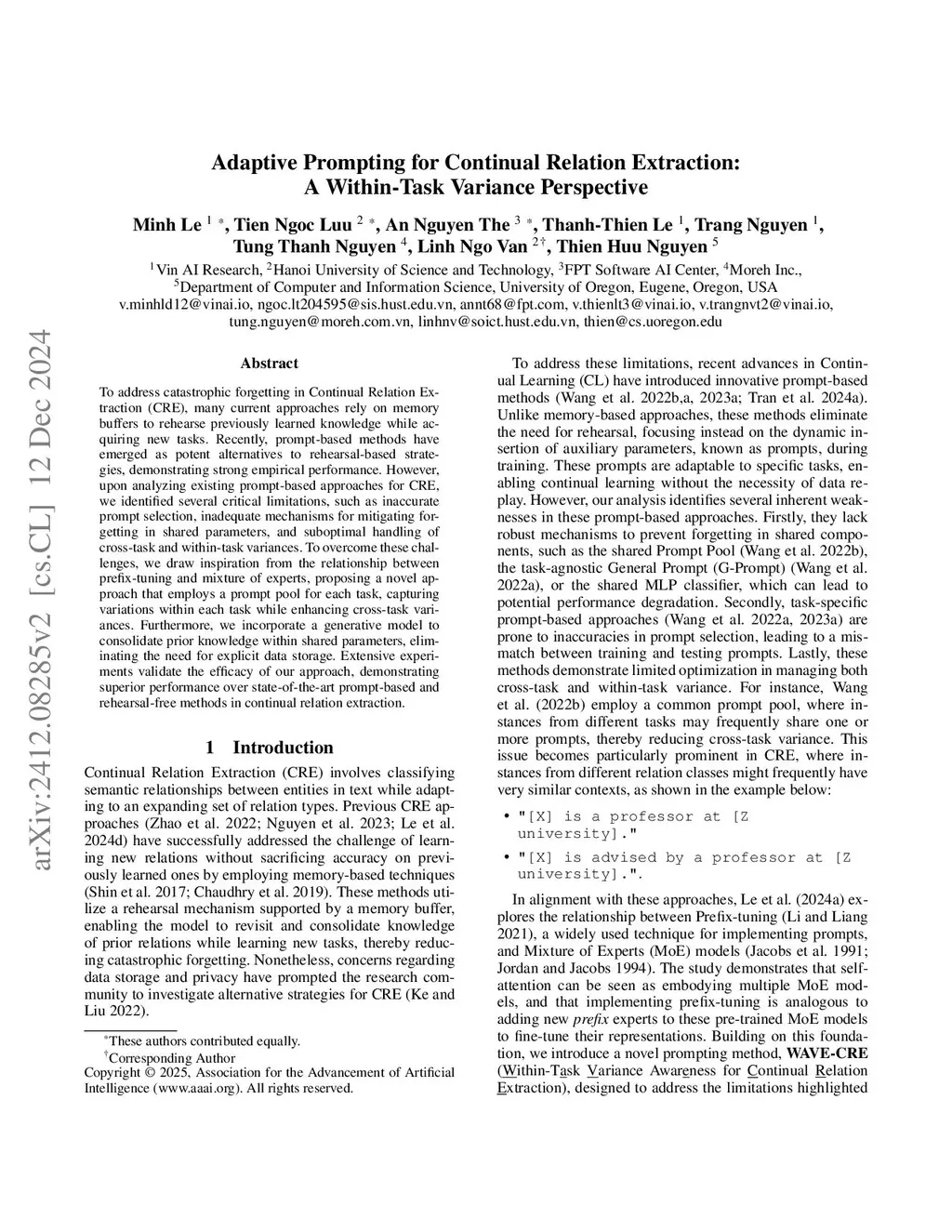 Adaptive Prompting for Continual Relation Extraction: A Within-Task Variance Perspective