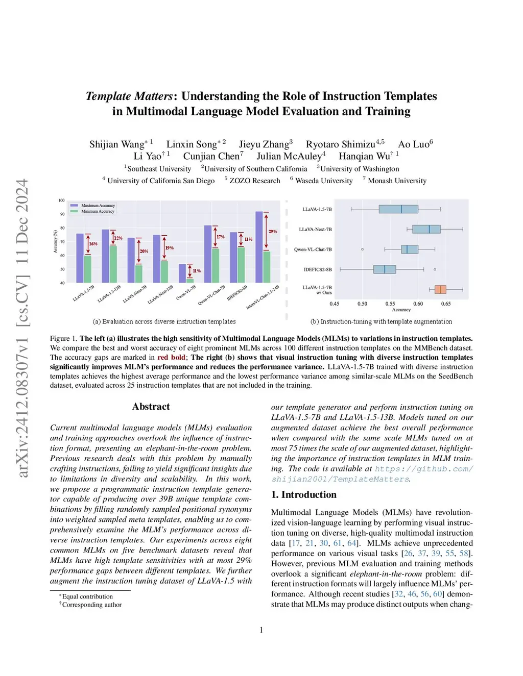 Investigating the Scaling Effect of Instruction Templates for Training Multimodal Language Model