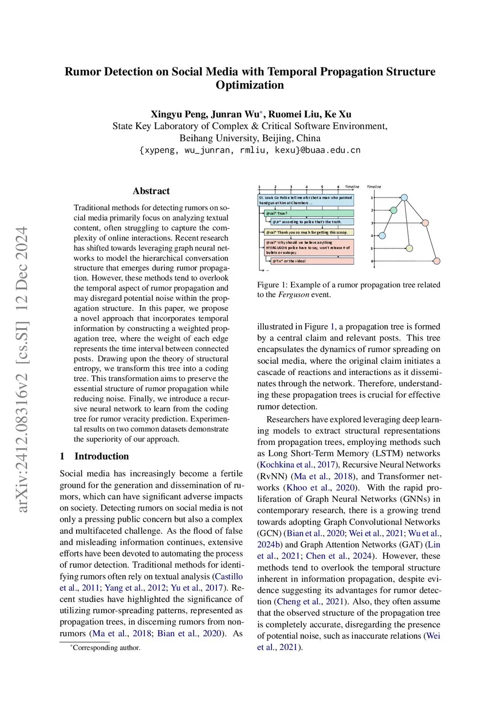 Rumor Detection on Social Media with Temporal Propagation Structure Optimization