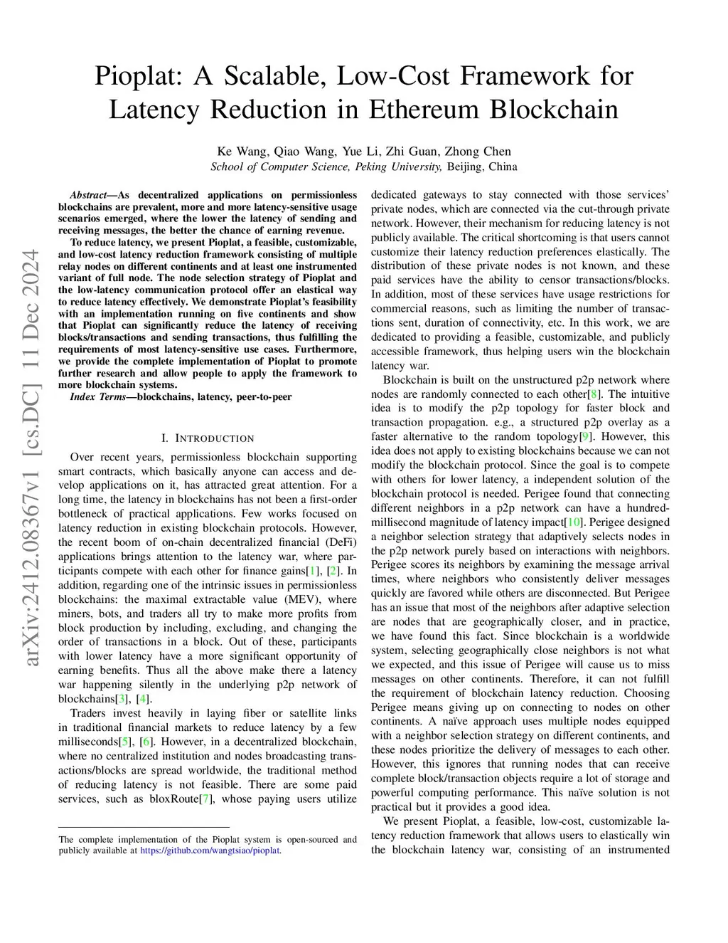 As decentralized applications on permissionless blockchains are prevalent, more and more latency-sensitive usage scenarios emerged, where the lower the latency of sending and receiving messages, the better the chance of earning revenue. To reduce latency, we present Pioplat, a feasible, customizable, and low-cost latency reduction framework consisting of multiple relay nodes on different continents and at least one instrumented variant of a full node. The node selection strategy of Pioplat and the low-latency communication protocol offer an elastic way to reduce latency effectively. We demonstrate Pioplat's feasibility with an implementation running on five continents and show that Pioplat can significantly reduce the latency of receiving blocks/transactions and sending transactions, thus fulfilling the requirements of most latency-sensitive use cases. Furthermore, we provide the complete implementation of Pioplat to promote further research and allow people to apply the framework to more blockchain systems.