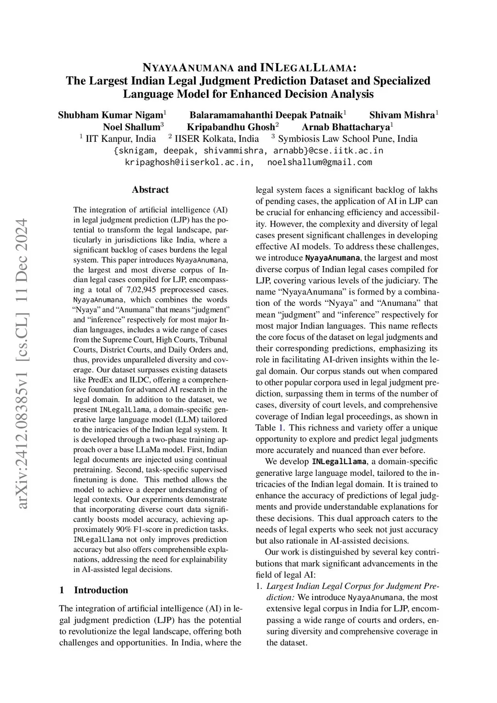 NyayaAnumana & INLegalLlama: The Largest Indian Legal Judgment