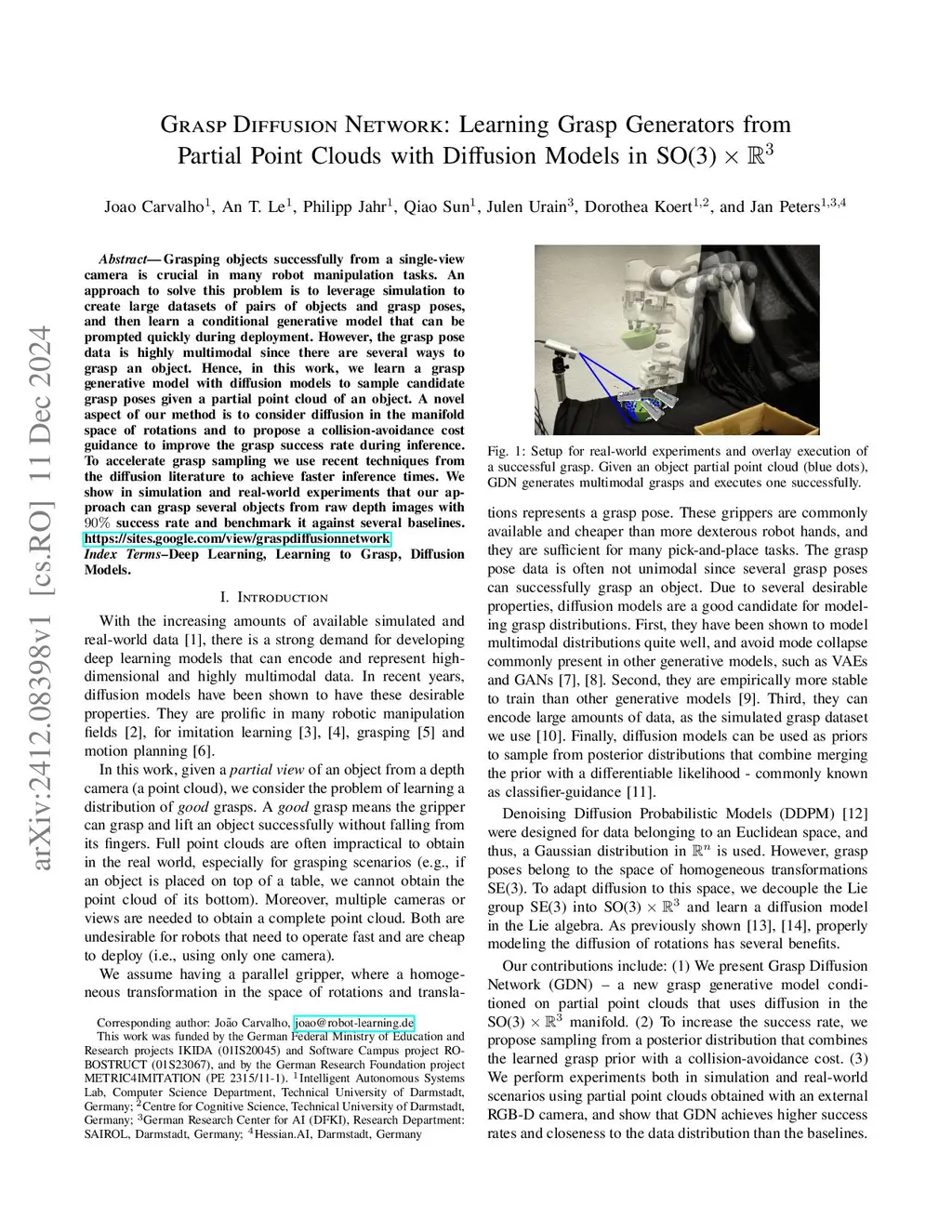 Grasp Diffusion Network: Learning Grasp Generators from Partial Point