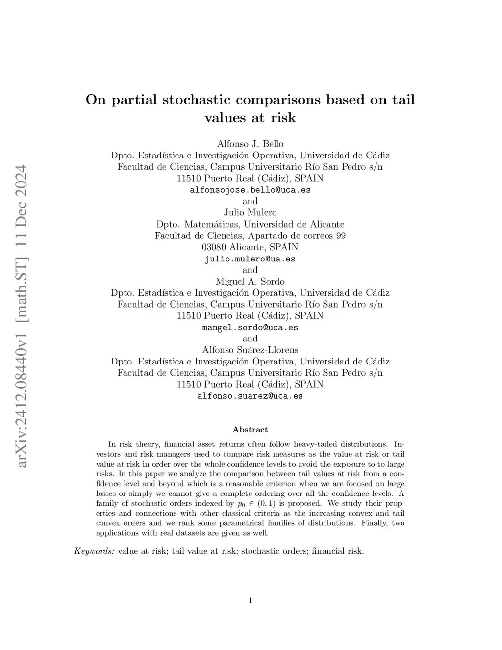 In risk theory, financial asset returns often follow heavy-tailed distributions. Investors and risk managers used to compare risk measures as the value at risk or tail value at risk in order over the whole confidence levels to avoid the exposure to to large risks. In this paper we analyze the comparison between tail values at risk from a confidence level and beyond which is a reasonable criterion when we are focused on large losses or simply we cannot give a complete ordering over all the confidence levels. A family of stochastic orders indexed by is proposed. We study their properties and connections with other classical criteria as the increasing convex and tail convex orders and we rank some parametrical families of distributions. Finally, two applications with real datasets are given as well.