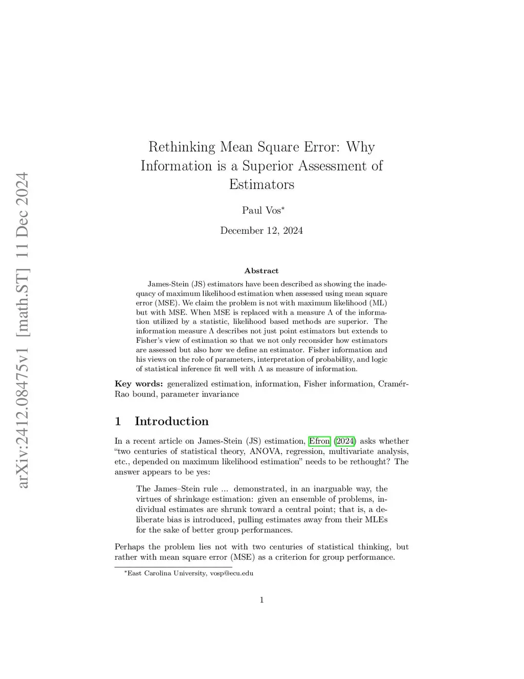 James-Stein (JS) estimators have been described as showing the inadequacy of maximum likelihood estimation when assessed using mean square error (MSE). We claim the problem is not with maximum likelihood (ML) but with MSE. When MSE is replaced with a measure of the information utilized by a statistic, likelihood based methods are superior. The information measure describes not just point estimators but extends to Fisher's view of estimation so that we not only reconsider how estimators are assessed but also how we define an estimator. Fisher information and his views on the role of parameters, interpretation of probability, and logic of statistical inference fit well with as measure of information.