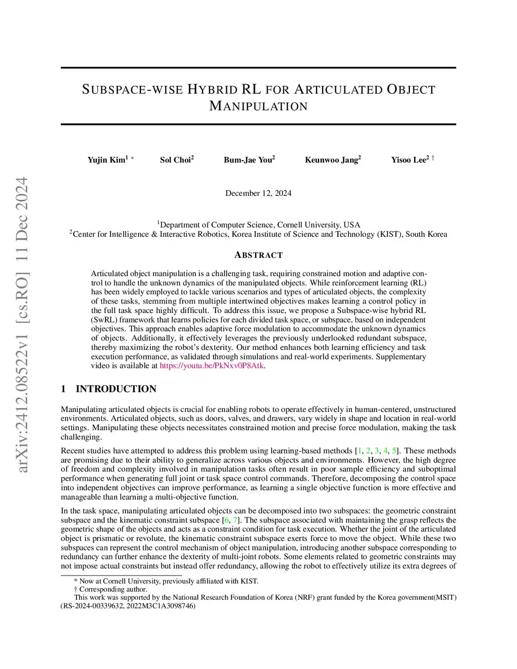 Subspace-wise Hybrid RL for Articulated Object Manipulation