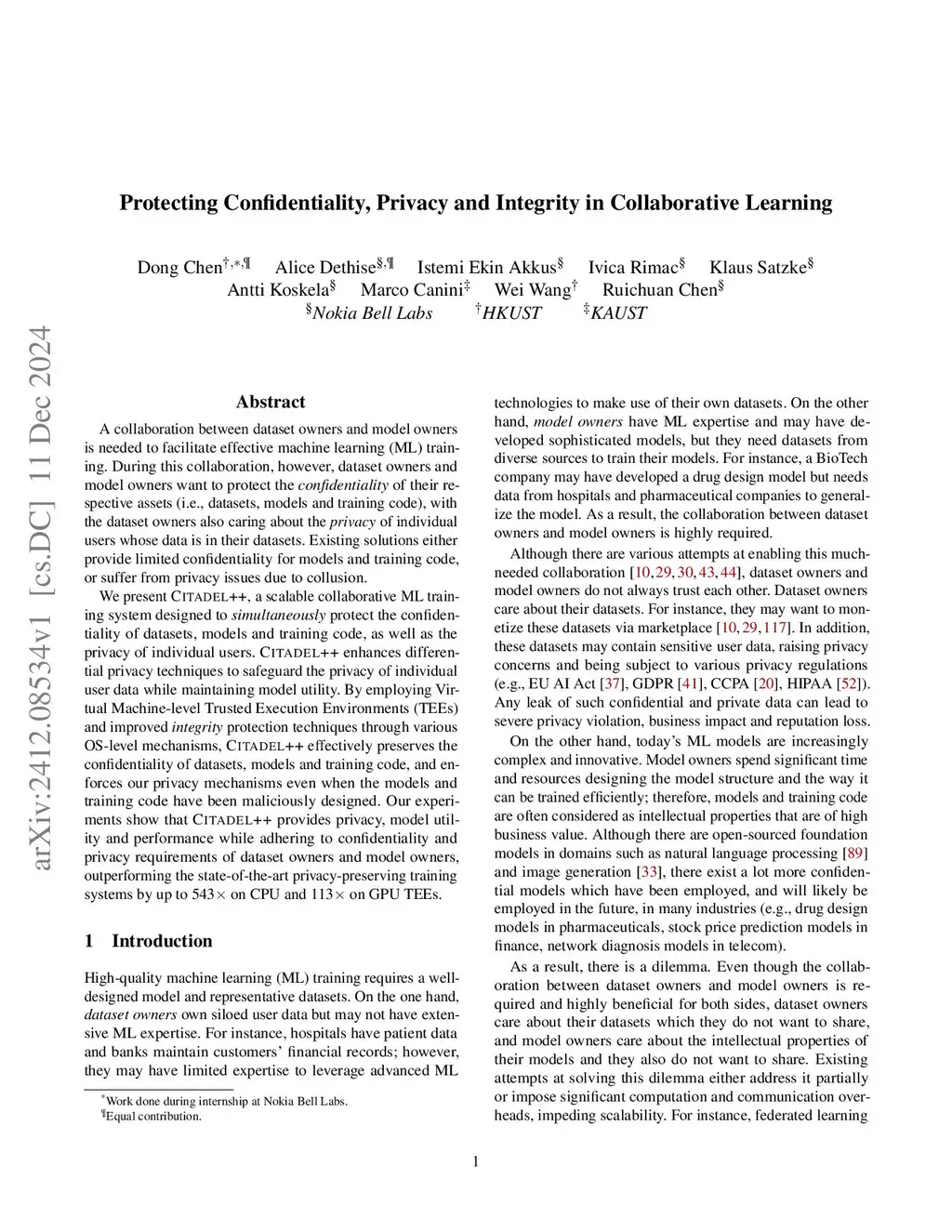 Protecting Confidentiality, Privacy and Integrity in Collaborative Learning