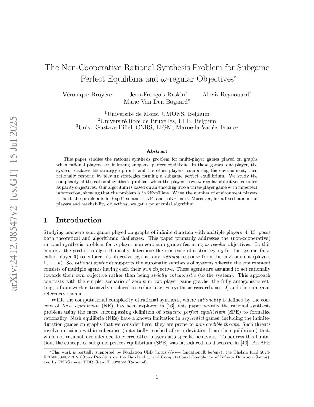 This paper studies the rational synthesis problem for multi-player games played on graphs when rational players are following subgame perfect equilibria. In these games, one player, the system, declares his strategy upfront, and the other players, composing the environment, then rationally respond by playing strategies forming a subgame perfect equilibrium. We study the complexity of the rational synthesis problem when the players have {\omega}-regular objectives encoded as parity objectives. Our algorithm is based on an encoding into a three-player game with imperfect information, showing that the problem is in 2ExpTime. When the number of environment players is fixed, the problem is in ExpTime and is NP- and coNP-hard. Moreover, for a fixed number of players and reachability objectives, we get a polynomial algorithm.