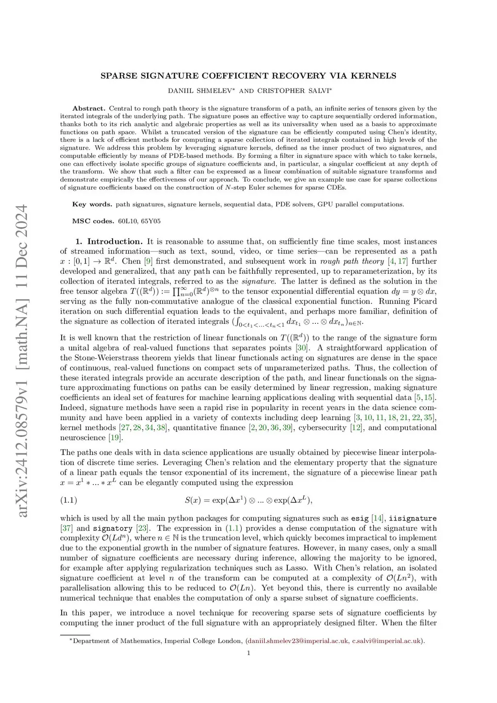 Central to rough path theory is the signature transform of a path, an infinite series of tensors given by the iterated integrals of the underlying path. The signature poses an effective way to capture sequentially ordered information, thanks both to its rich analytic and algebraic properties as well as its universality when used as a basis to approximate functions on path space. Whilst a truncated version of the signature can be efficiently computed using Chen's identity, there is a lack of efficient methods for computing a sparse collection of iterated integrals contained in high levels of the signature. We address this problem by leveraging signature kernels, defined as the inner product of two signatures, and computable efficiently by means of PDE-based methods. By forming a filter in signature space with which to take kernels, one can effectively isolate specific groups of signature coefficients and, in particular, a singular coefficient at any depth of the transform. We show that such a filter can be expressed as a linear combination of suitable signature transforms and demonstrate empirically the effectiveness of our approach. To conclude, we give an example use case for sparse collections of signature coefficients based on the construction of N-step Euler schemes for sparse CDEs.