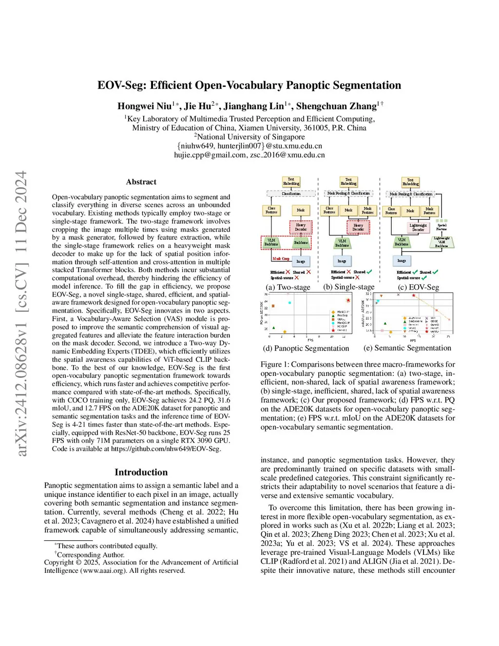 EOV-Seg: Efficient Open-Vocabulary Panoptic Segmentation