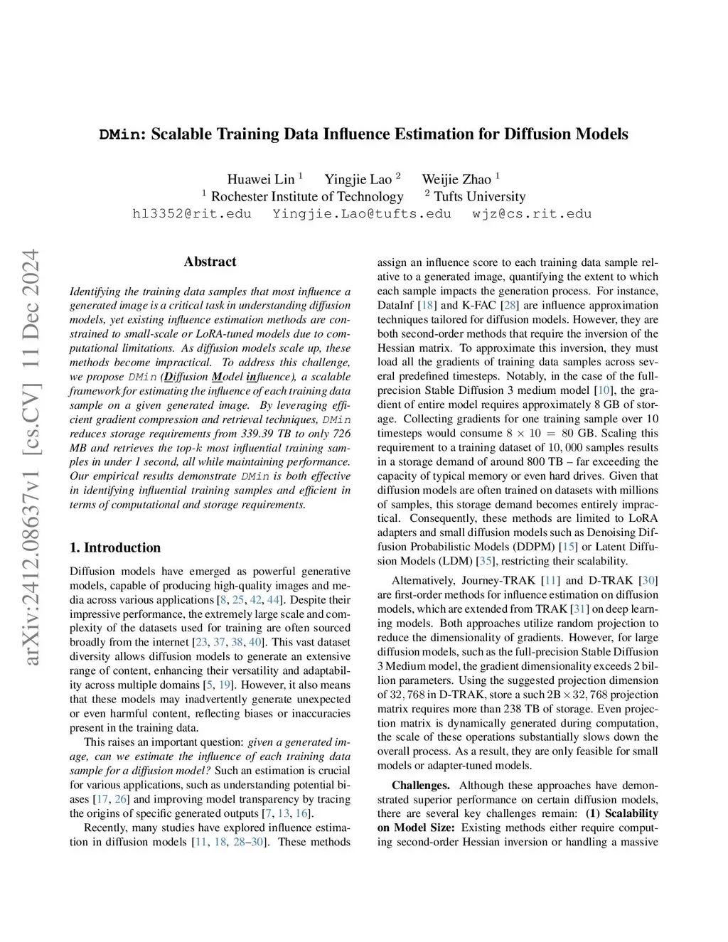 DMin: Scalable Training Data Influence Estimation for Diffusion Models