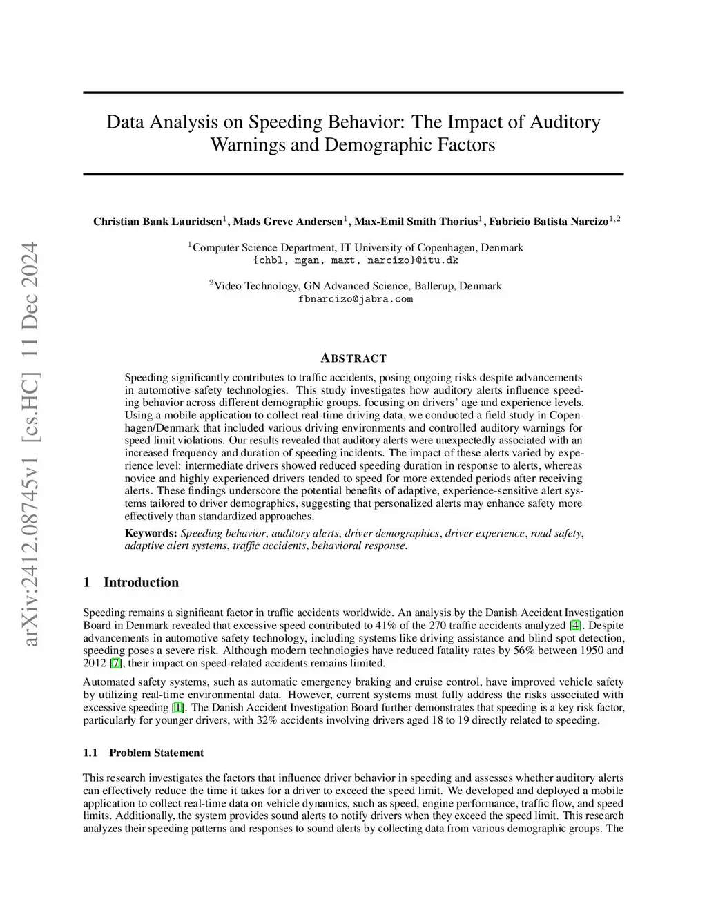 Data Analysis on Speeding Behavior: The Impact of Auditory Warnings and