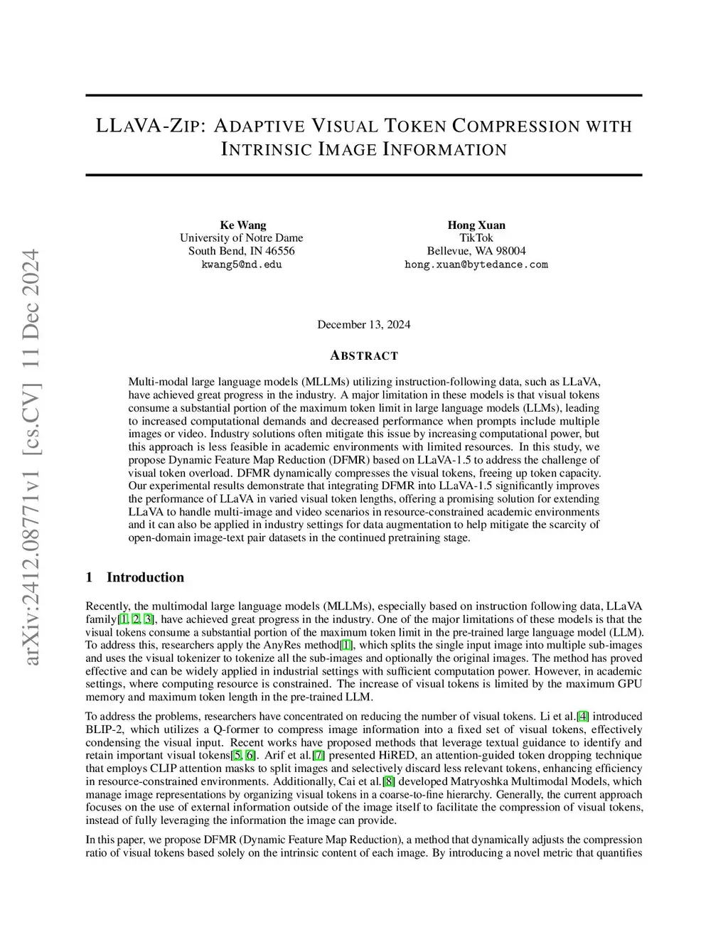 LLaVA-Zip: Adaptive Visual Token Compression with Intrinsic Image